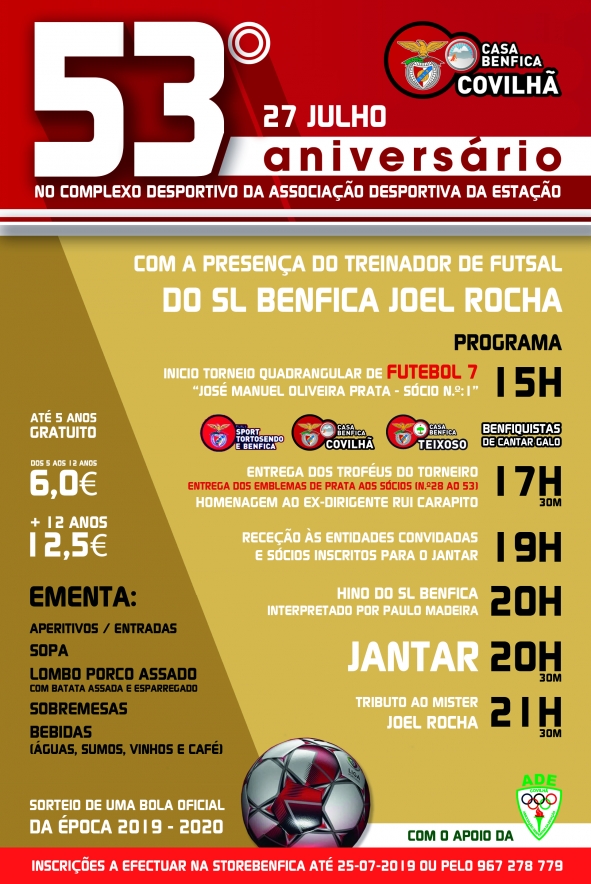 As comemorações decorrerão no Complexo Desportivo da Associação Desportiva da Estação e terão o seu início com a realização de um Torneio Quadrangular de Futebol de 7, com a presença das equipas das Casas do Benfica da Covilhã e do Teixoso, com o Sport Tortosendo e Benfica e com uma equipa de Benfiquistas de Cantar Galo.
